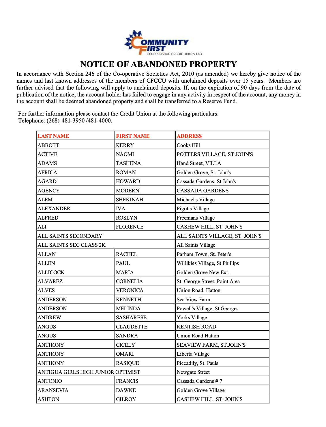Headquarters Old Parham Road P.O. Box 1632 St. John’s, Antigua
