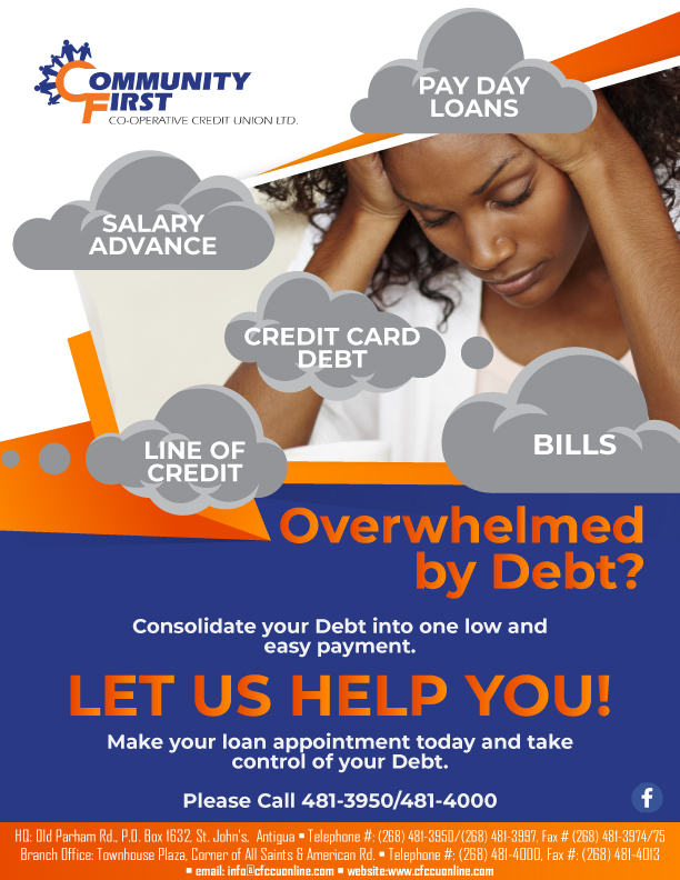 10 Nov, 2025 News 0 Comments qvwke Are you overwhelmed by Debt? Consolidate your debt into one low and easy payment. Lets us help you! Please call 481-3950/481-4000 to make you loan appointment. PreviousMembers, it’s your time to serve!!NextAre you prepared for the Hurricane Season?